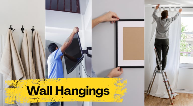Mounting TVs, hanging curtains, sheleves and pictures, installing appliances and fixtures